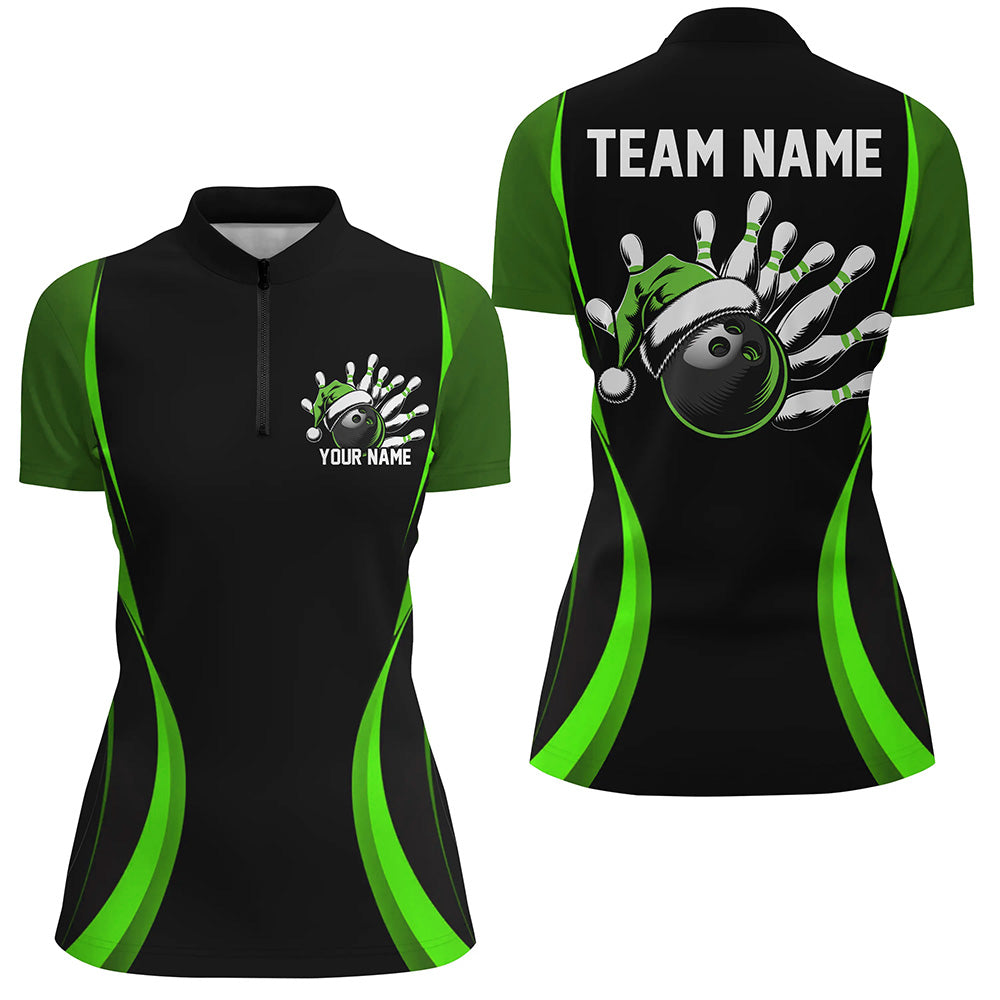 Custom Christmas Ladies Bowling Shirts, Bowling Team Shirt Christmas Bowling Outfit | Green IPHW7326