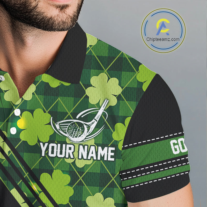 Black and Green shamrock argyle pattern Golf Polo Shirts For Men Custom St Patrick mens golf top NQS11238