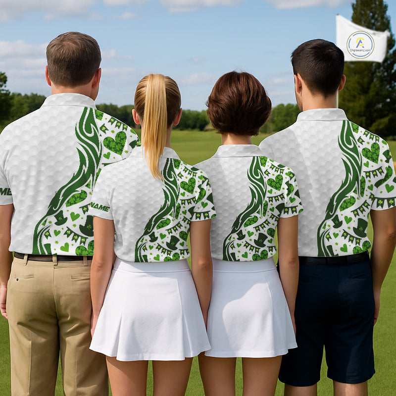 Custom White and Green St Patrick's day pattern Golf Polo Shirts For Men, team mens golf outfit NQS11209