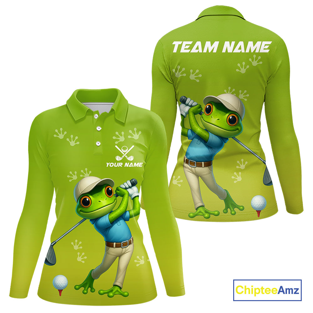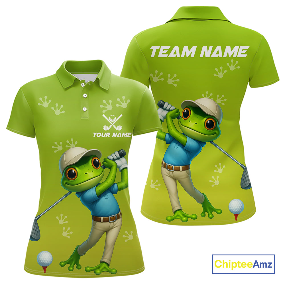 Funny Frog Golf polo shirts for Women Custom Green ladies golf top, personalized golf gifts NQS11280