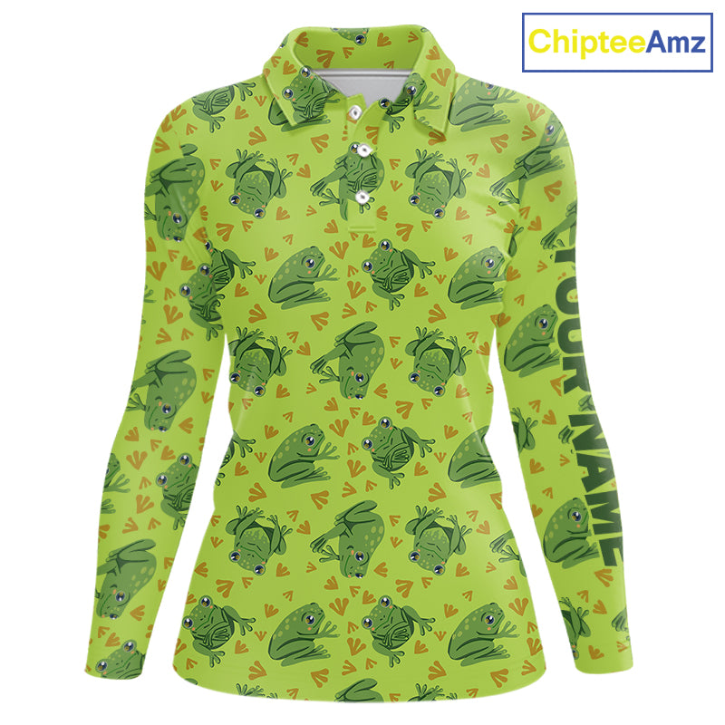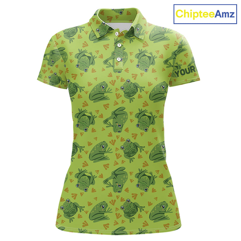 Funny Green Frog pattern Golf polo shirt for Women Custom ladies golf top, personalized golf gifts NQS11284