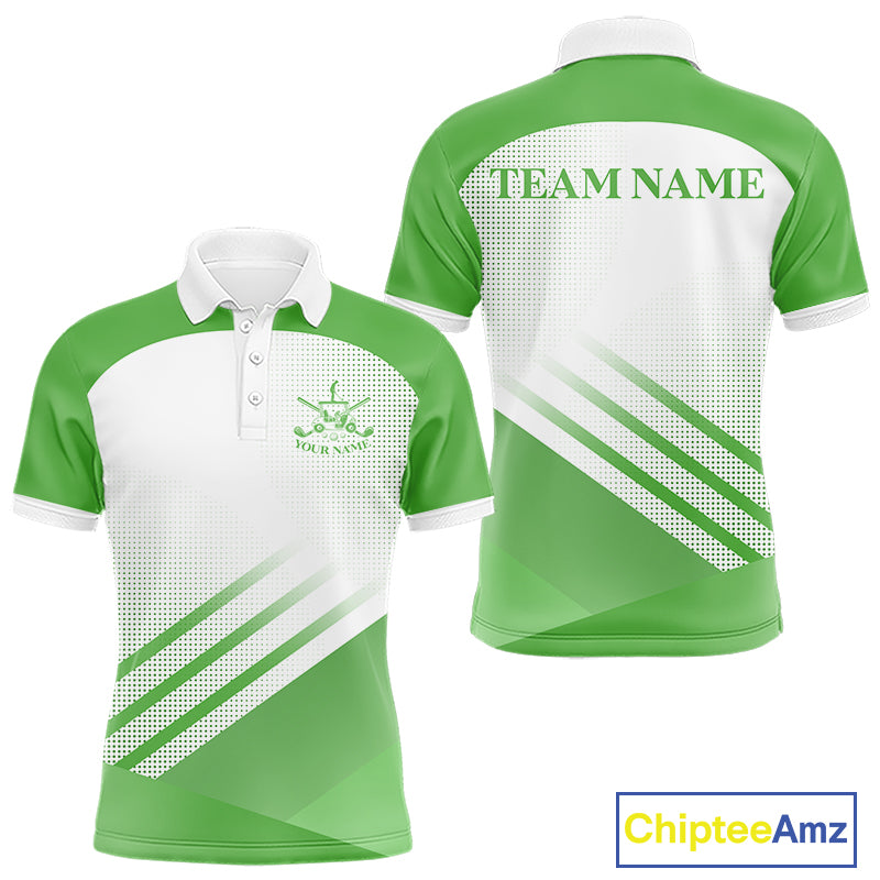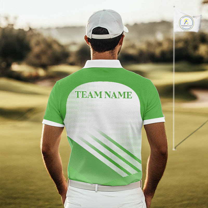 Green And White Mens Golf Polo Shirts Custom Golf Tops For Men, Personalized Golf Gifts NHN0059