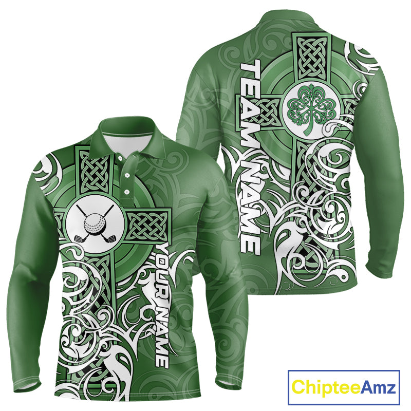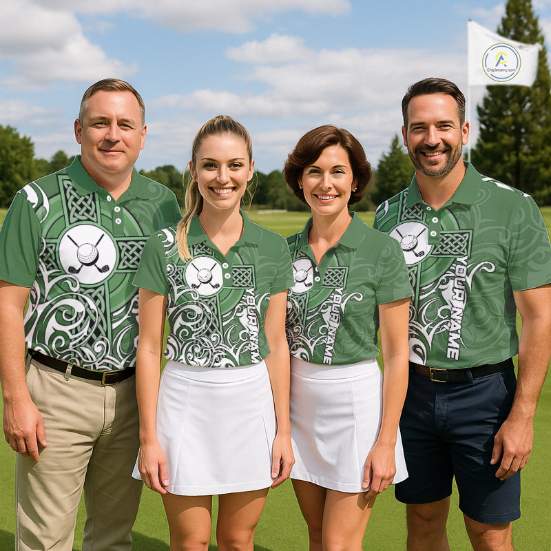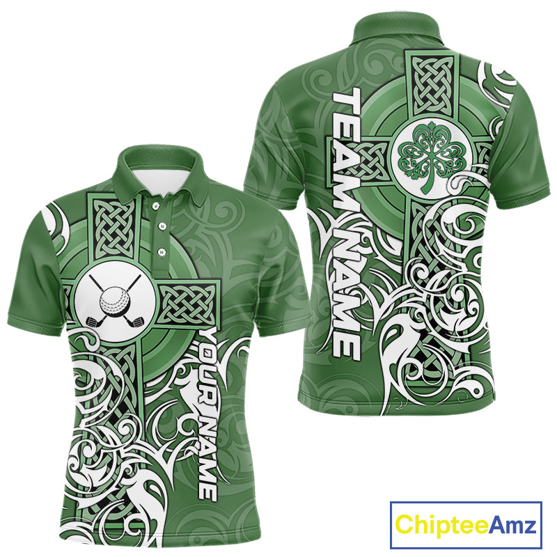Green Irish Tribal Cross St Patrick's Day Mens Golf Polo Shirts Custom Lucky Golf Team Jerseys NQS11335