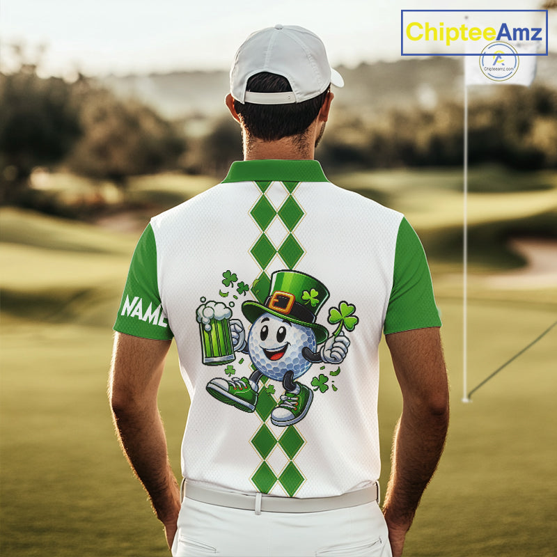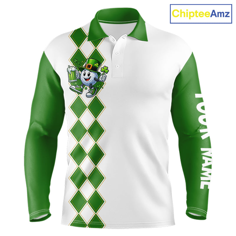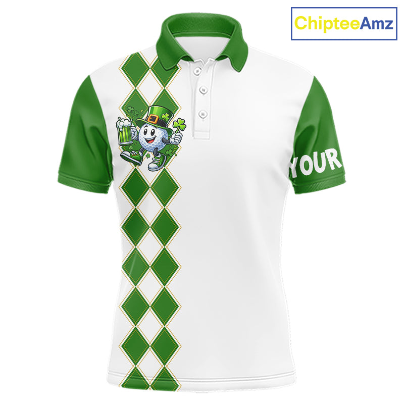 White and Green argyle pattern Mens Golf polo shirts Custom funny St. Patrick's day mens golf outfit NQS11296