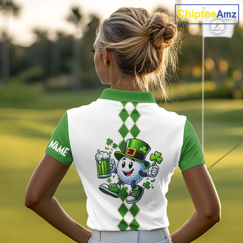 White and Green argyle pattern Women Golf polo shirts Custom funny St Patrick day ladies golf outfit NQS11296
