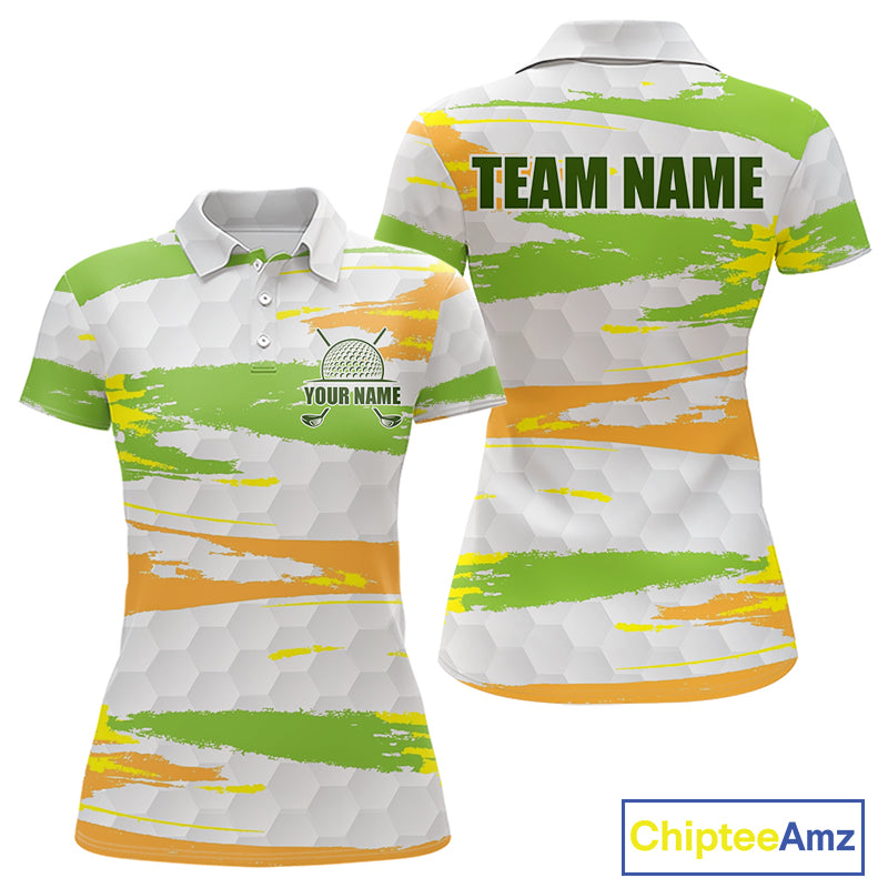 Womens Golf Polo Shirt Custom Name Green Pattern Golf Shirts Custom Golf Clubs For Team Golf Top NHN0020