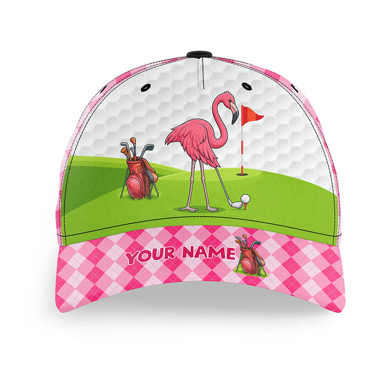 Funny Flamingo Golfer hat custom pink and white argyle pattern golf sun hats, unique golf gifts NQS9933
