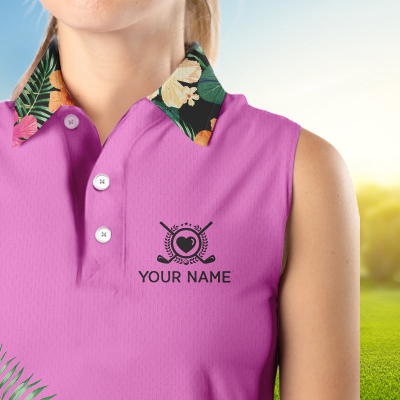 Pink tropical leaf Womens sleeveless polo shirt custom name I am not swearing I'm using my golf words NQS9753