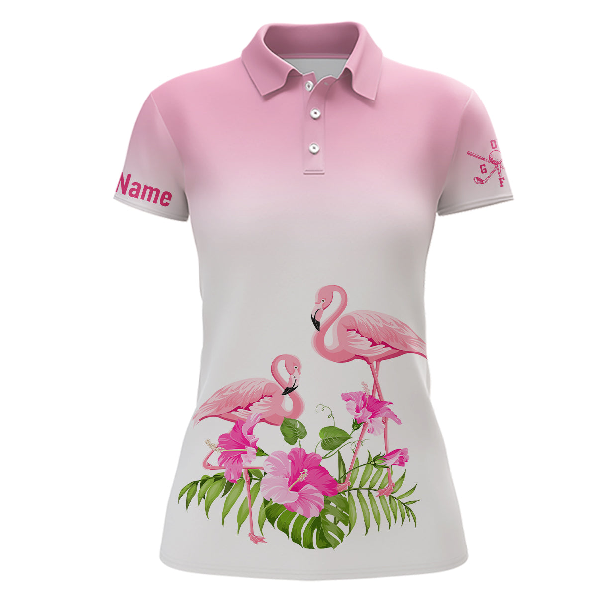 Personalized Pink Flamingo Tropical Womens Golf Polo Shirt Custom Cute Golf Shirts For Women LDT0931