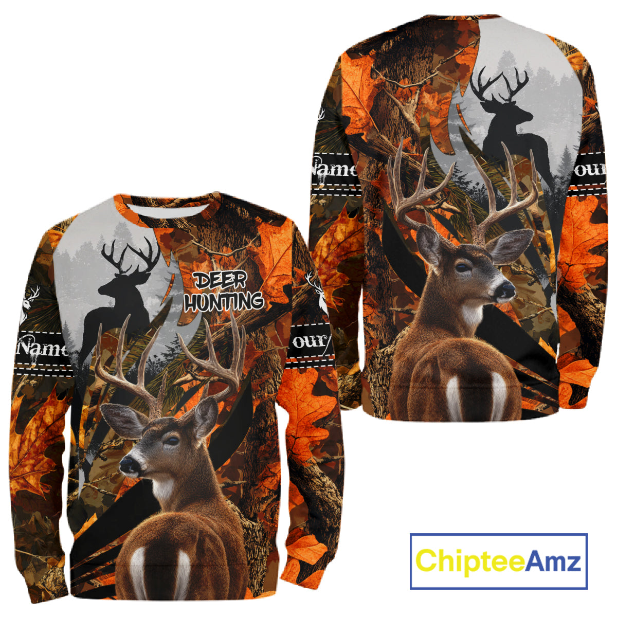 Whitetail Deer Hunting Orange Camo 3D Printed Shirts, Hunting Hoodie Gift for Men NHT327