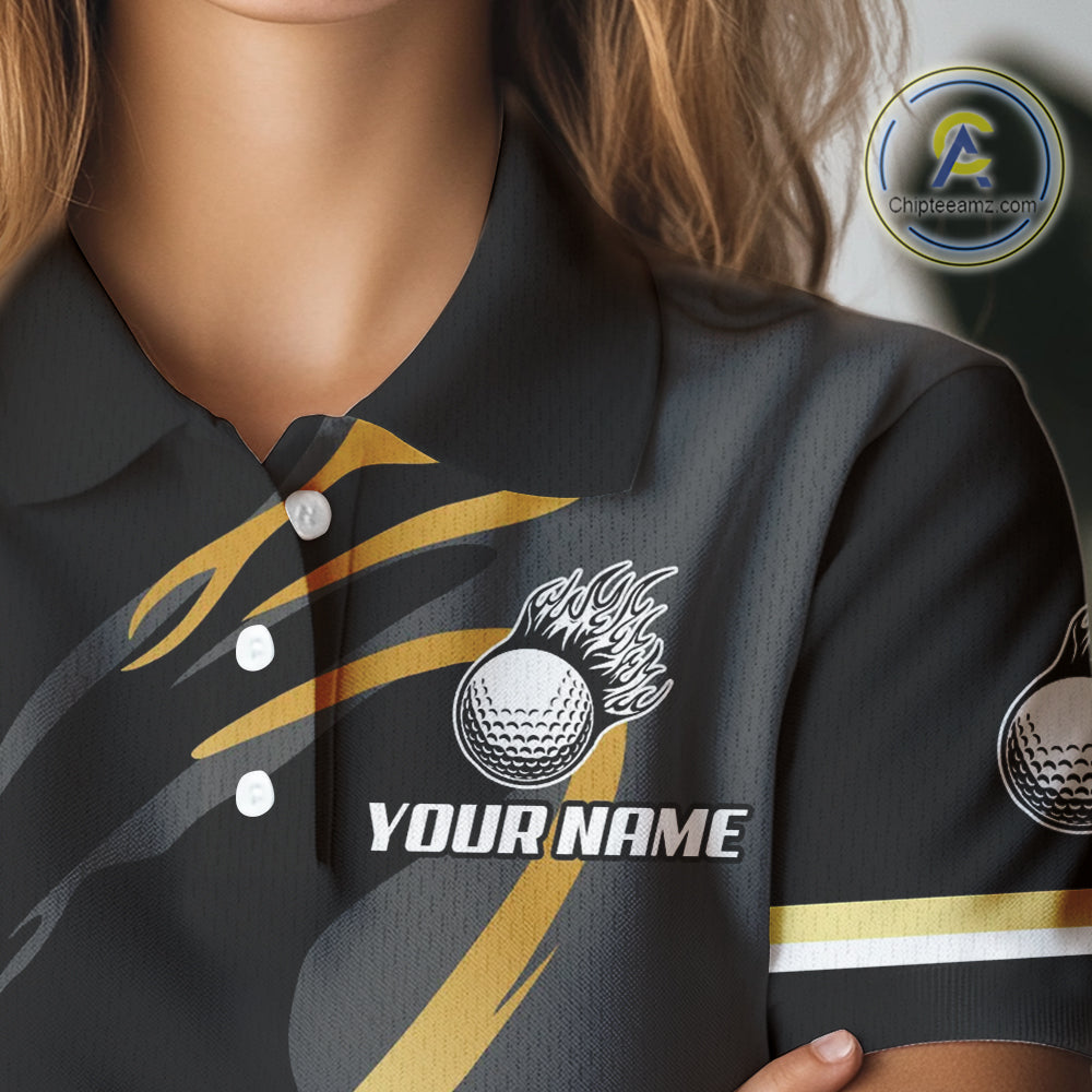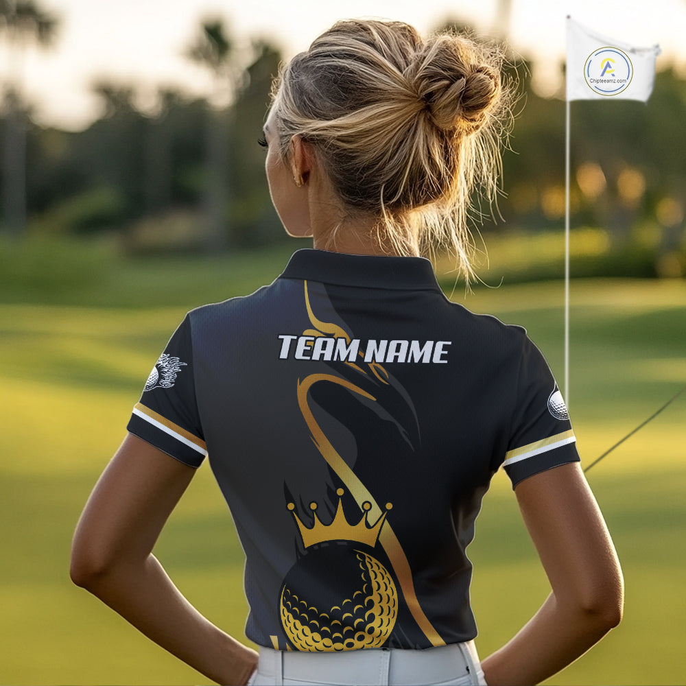 Black and Gold Crown Golf ball Women's golf polo shirts custom team golf tops for ladies NQS10757