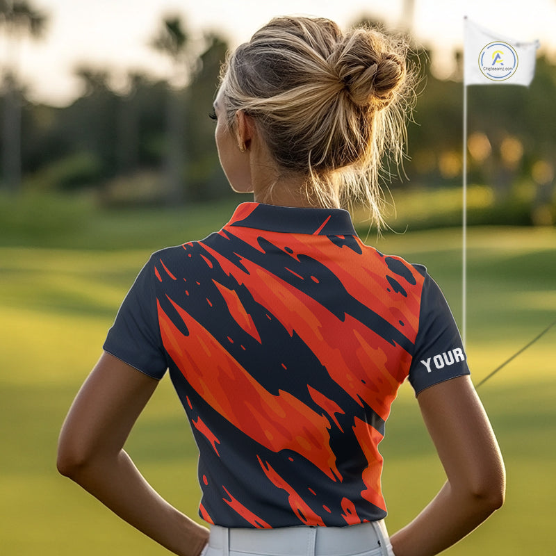 Black and Orange Flame Golf polo shirts for Women Custom ladies golf outfit, personalized golf gifts NQS10069