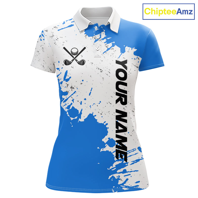 Blue and White Women's Golf polo shirts Custom team golf outfit, Personalized golf attire for ladies NQS11316