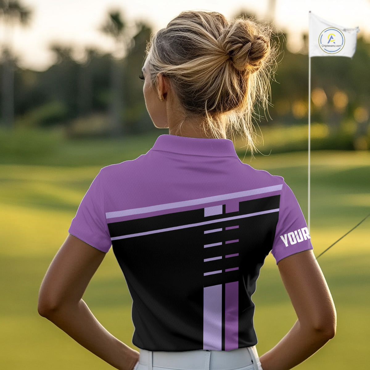 Personalized Black and Purple Women golf polo shirts, Custom Golf Shirts For Team ladies golfers NQS10160