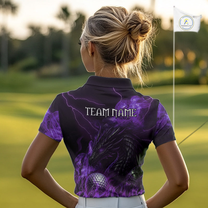 Purple Flame Dragon Women Golf polo shirts Custom Dragon team ladies golf outfit, gift for golf lover NQS10792