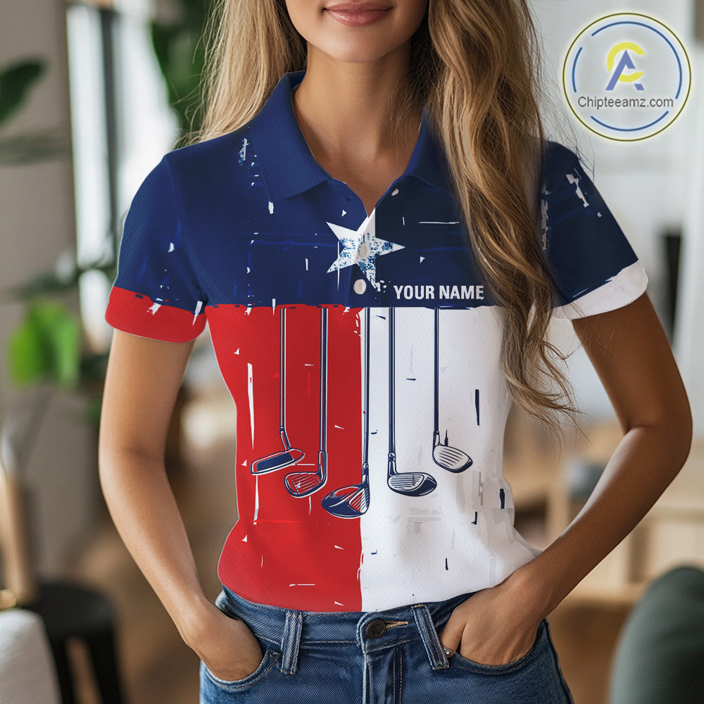 Texas Flag Golf Clubs Women Golf polo shirt Custom patriotic ladies golf top, personalized golf gifts NQS10381