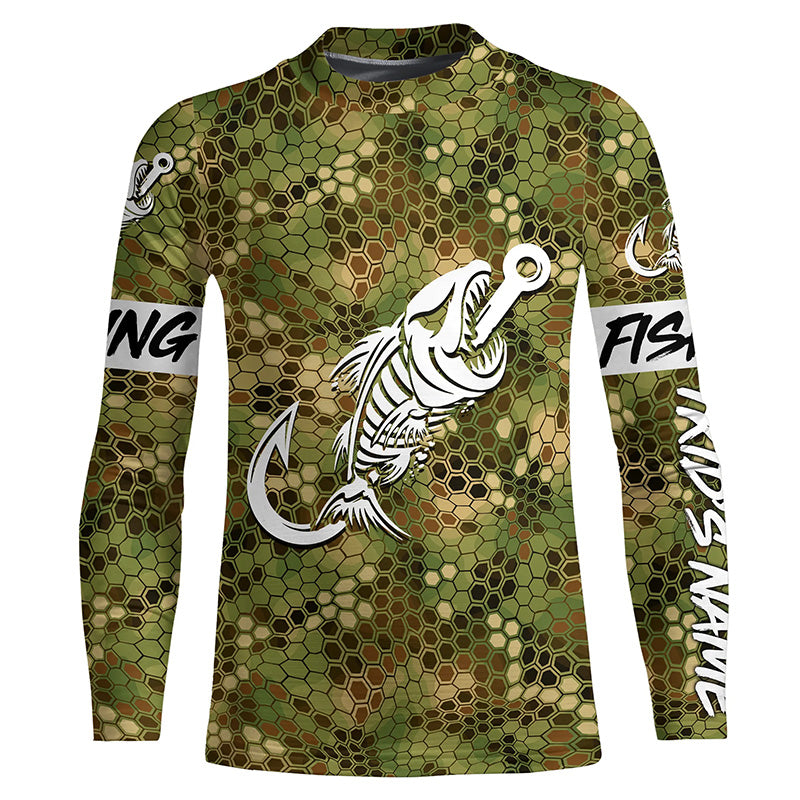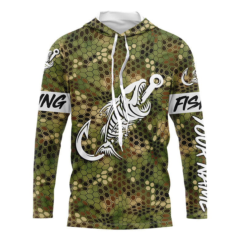 Green Camo fishing shirts Fish hook skull Custom Name sun protection mens long sleeve fishing shirts NQS5086