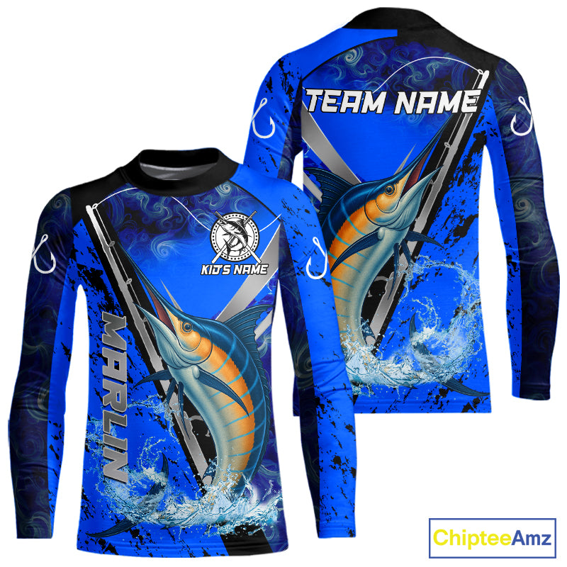 Blue Camo Marlin fishing custom saltwater Marlin sun protection long sleeve fishing shirts for Team NQS10131