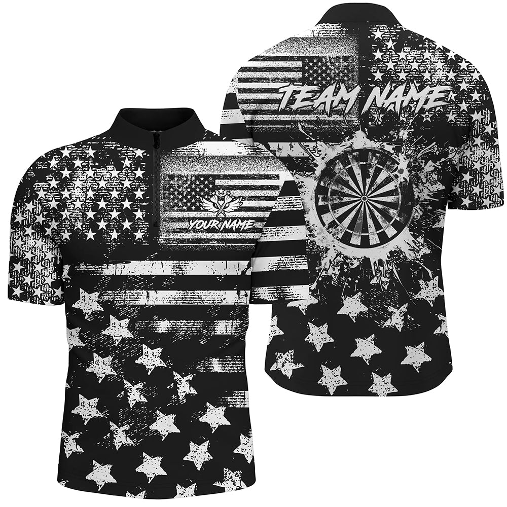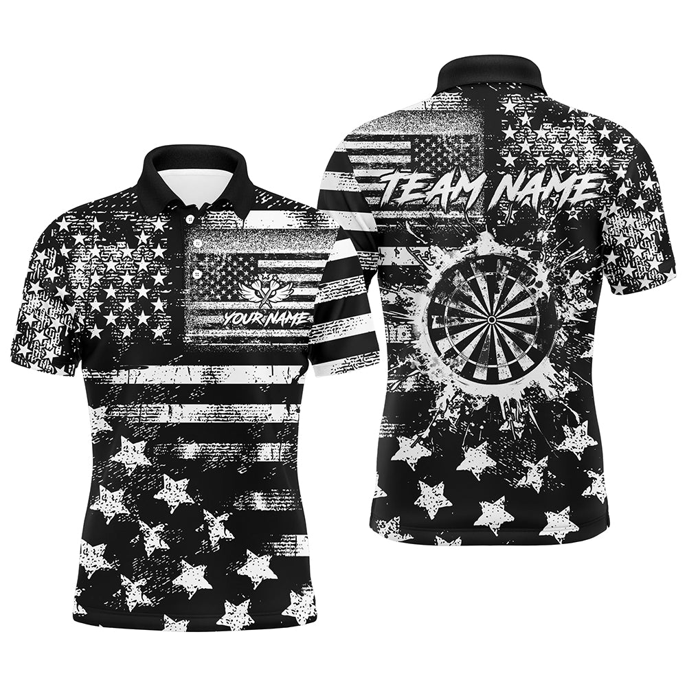 Custom Black Grunge US Flag Patriotic Darts Shirt For Men, Retro Darts Board Darts Team Jerseys TDM3155