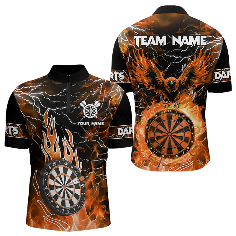 Orange Dart Board Fire Flame Custom Eagle Dart Shirts For Men, Thunder Lightning Dart Team Jerseys TDM3373