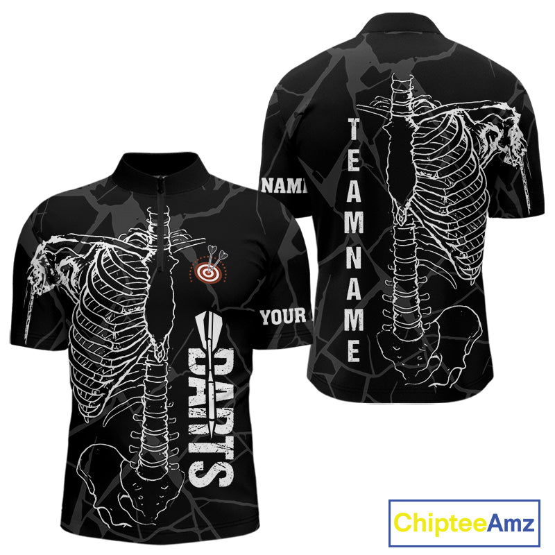 White Skeleton Custom Black Grunge Darts Polo & 1/4 Zip, Funny Dart Shirts For Men Dart Jerseys TDM3746