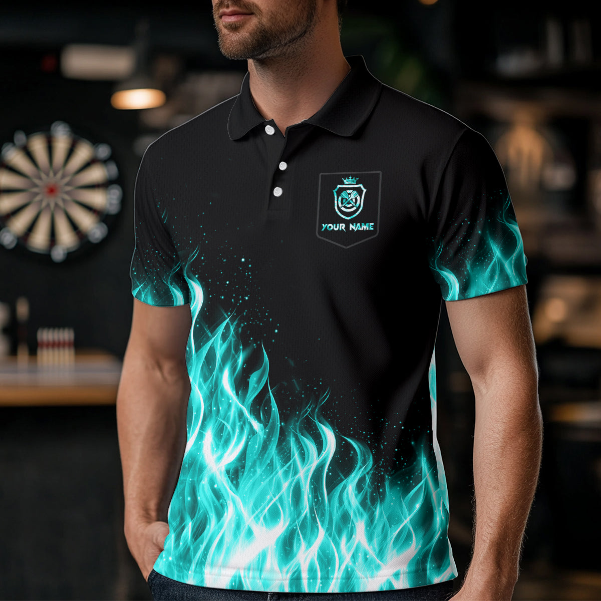 Turquoise Fire Flame Dart Shirt With Pocket For Men Custom Dart Team Jersey TDM3792