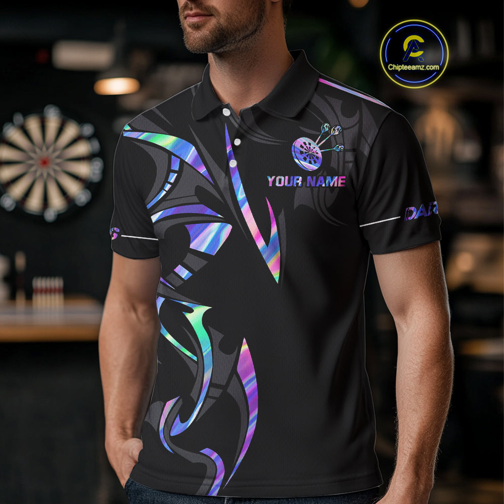 Black And Holographic Dartboard Crown Dart Shirts For Men – Custom Team Polo & Quarter Zip Jersey TDM4062