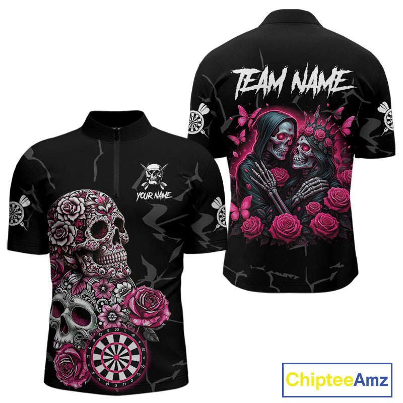 Personalized Pink Skull Roses Gothic Romance Darts Shirt For Men, Dart Jersey Outfit, Dart Gifts TDM4145