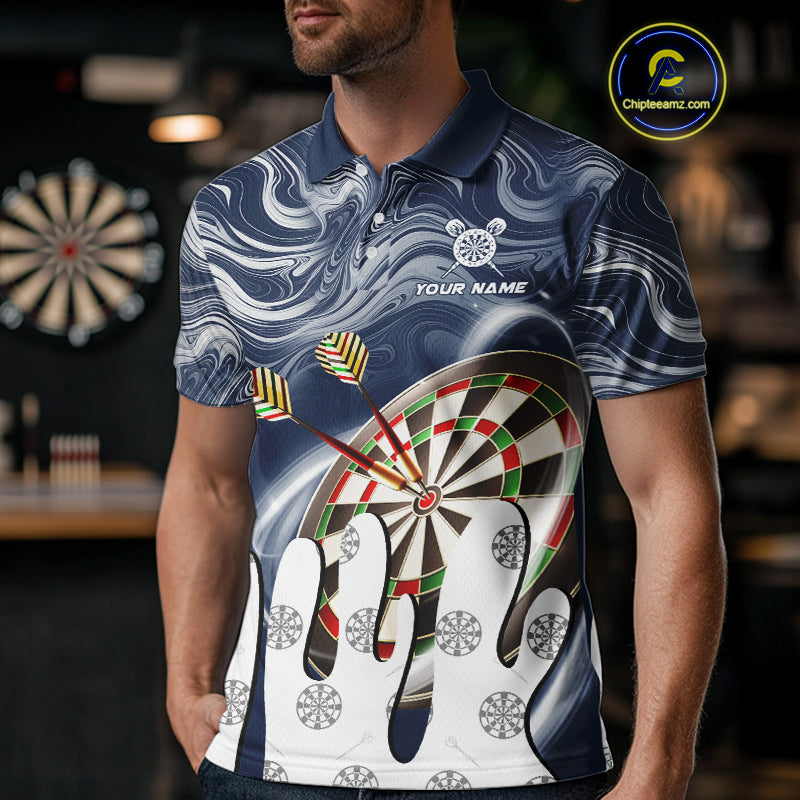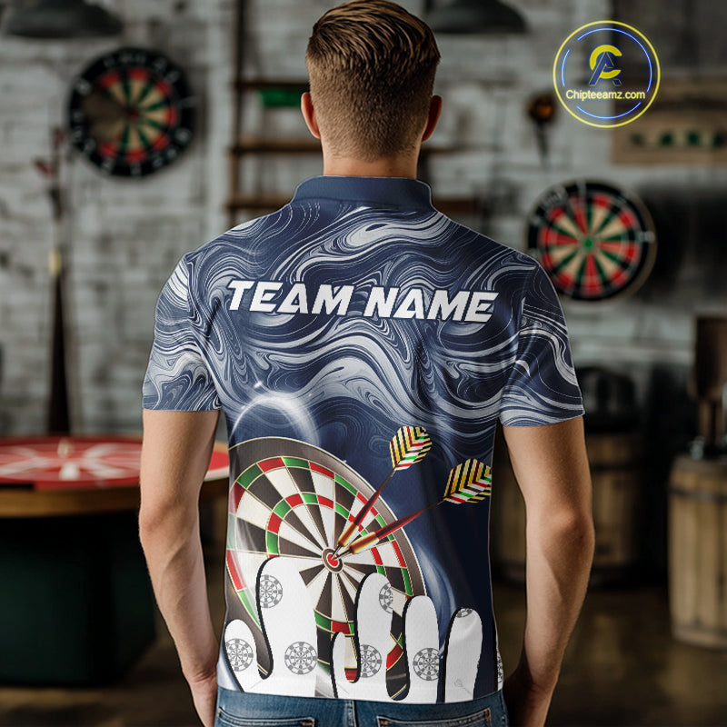 Personalized Marble Swirl Dart Shirts For Men Custom Funny Darts Team Jersey Polo & 1/4 Zip |Blue TDM4161