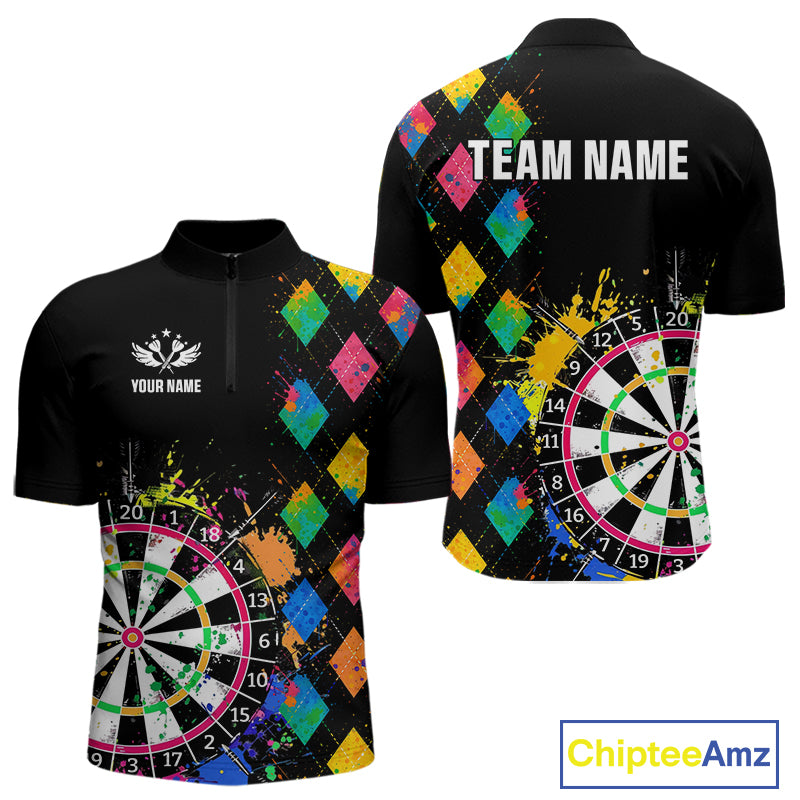 Custom Colorful Grunge Argyle Darts Shirt For Men Custom Darts Team Jersey, Funny Darts Gifts TDM4402