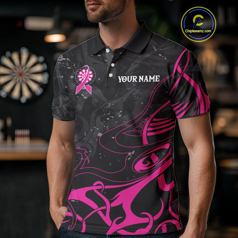 Pink Black Custom Breast Cancer Wings Dart Shirt For Men With Pocket Option TDM4491