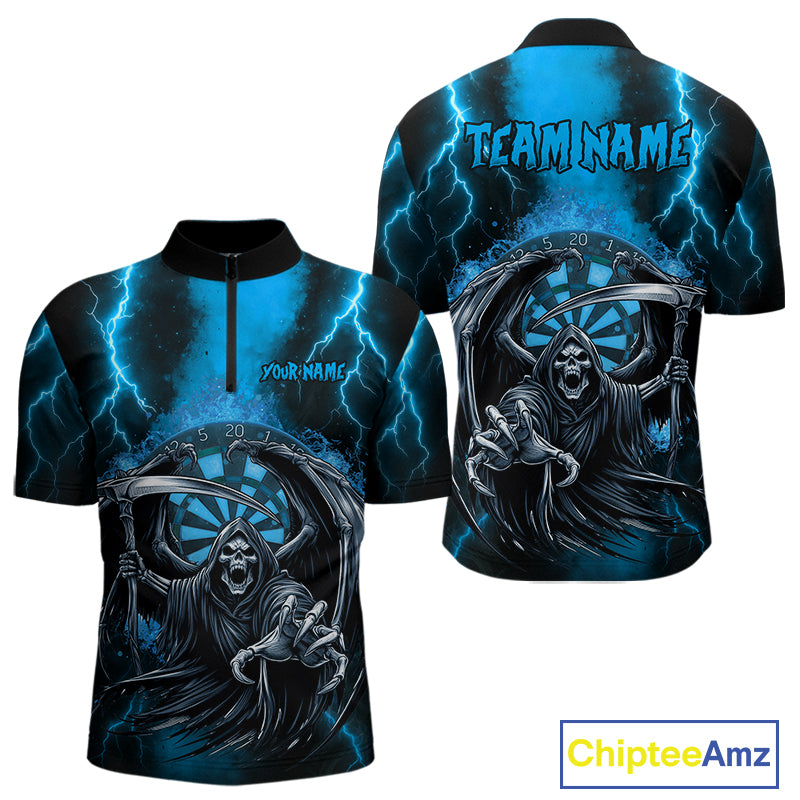 Personalized Blue Grim Reaper Thunder Lightning Darts Shirt For Men, 3D Darts Team Jerseys TDM4532