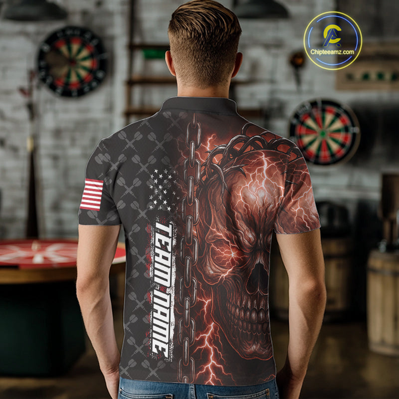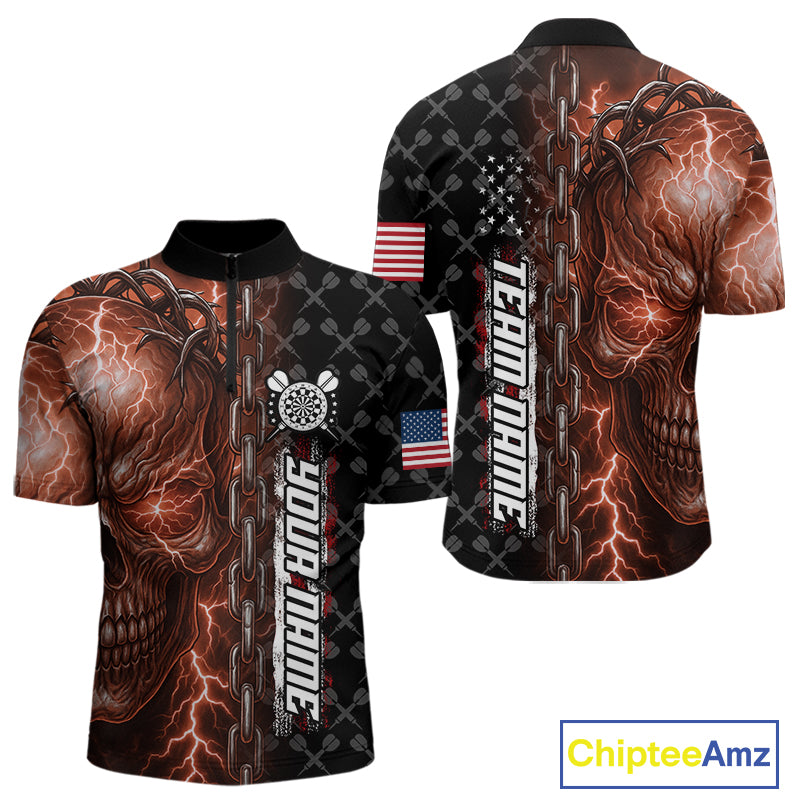 Personalized Orange Darts Skull Thunder Lightning Darts Shirt For Men, US Flag Darts Team Jersey TDM4615