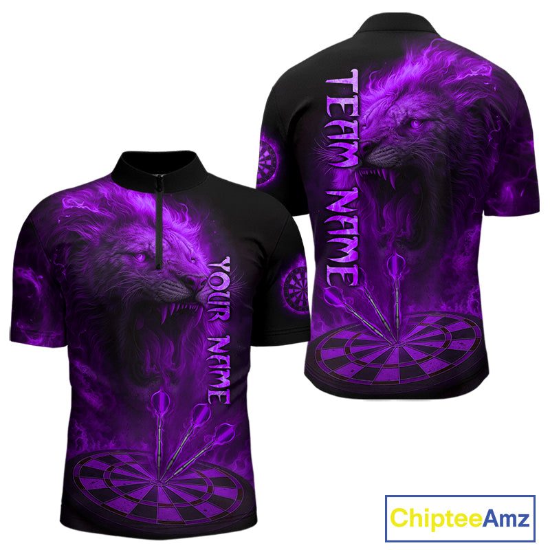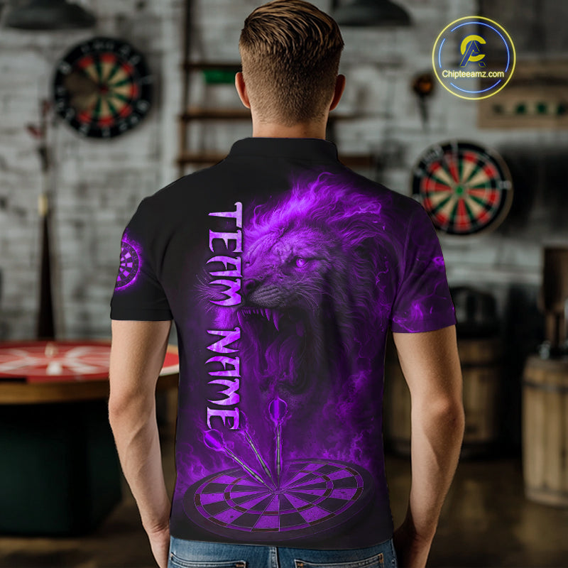 Personalized Fire Flame Lion Darts Shirt For Men Custom Purple Darts League Jersey Polo & 1/4 Zip TDM4679