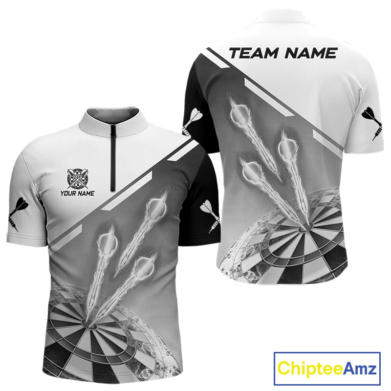 Personalized White And Grey Dart Jersey Polo & 1/4 Zip For Men Custom Dart Shirts Team Uniform TDM4754