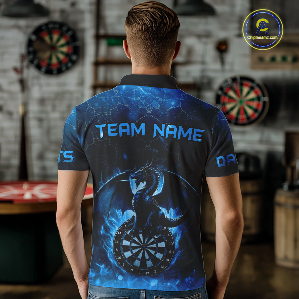 Darts Dragon Fire Flame 3D Printed Darts Shirts For Men Custom Team League Darts Jerseys |Blue TDM4760