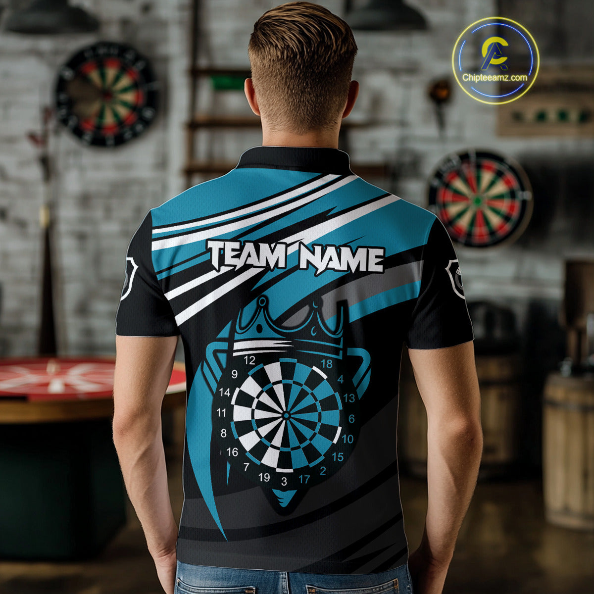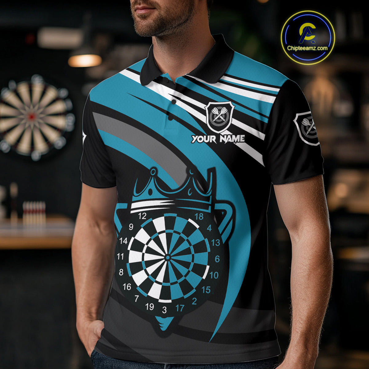 Black & Turquoise Dartboard Crown Darts Shirt For Men Custom Darts Jersey Team Polo & 1/4 Zip TDM4795