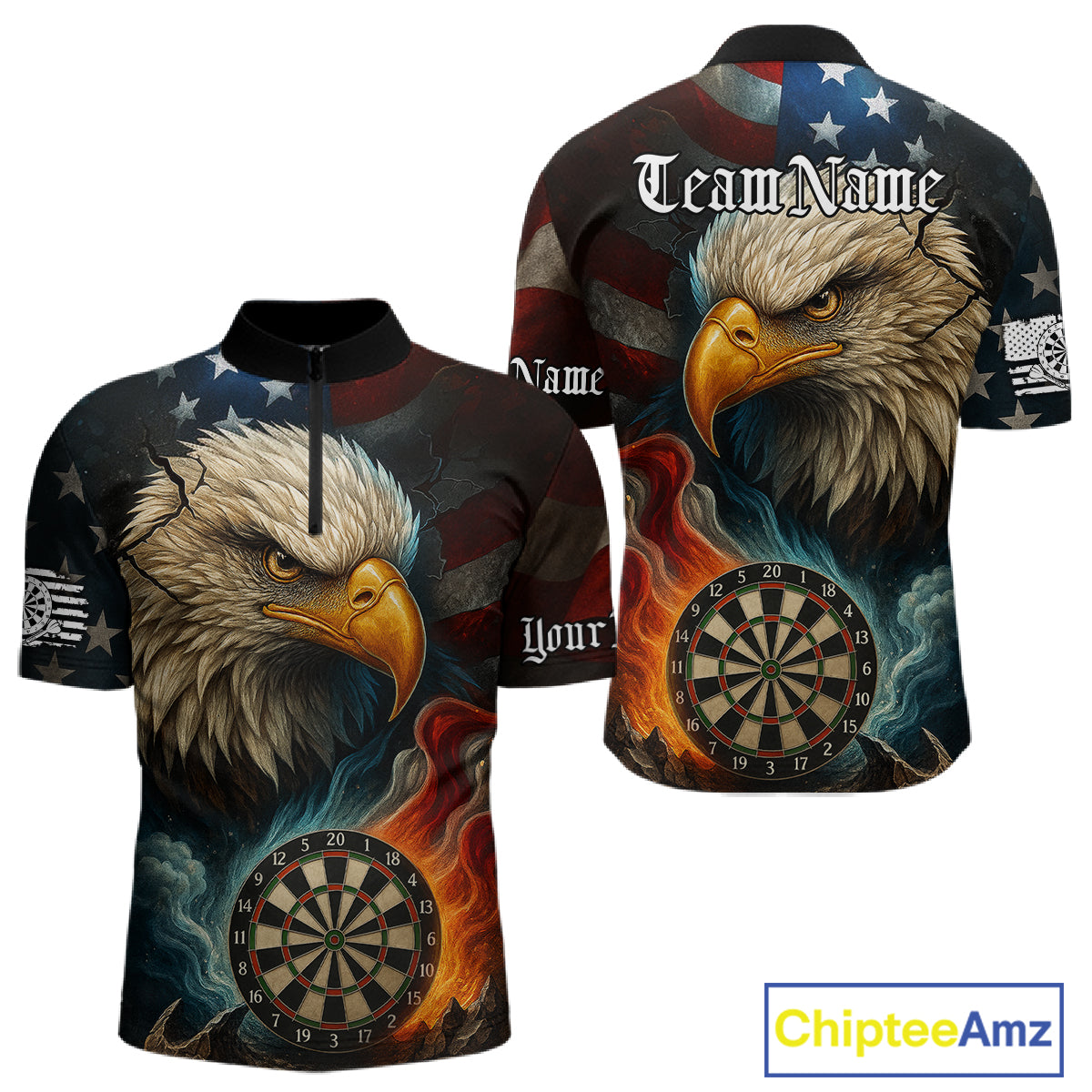 Personalized Eagle Flame Darts Shirt For Men Custom Patriotic American Flag Team Darts Jersey TDM4820