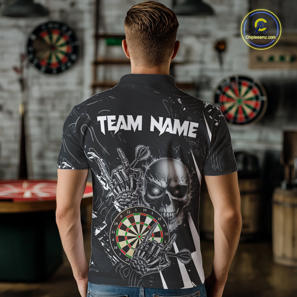 White Black 3D Skull Darts Polo & 1/4 Zip For Men Custom Darts League Team Jersey, Best Darts Gift TDM4828