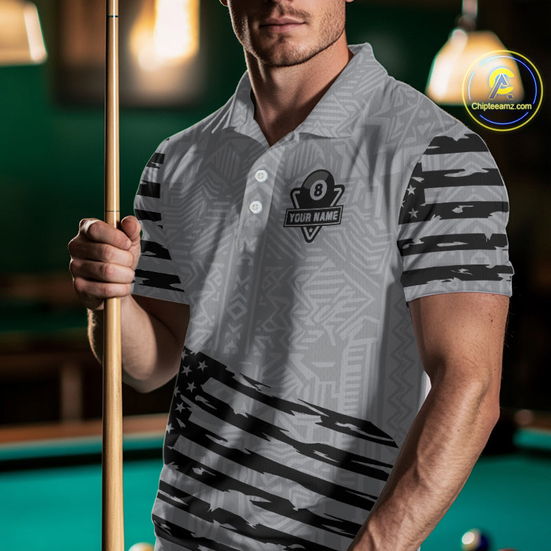 Personalized Grey US Flag Darts Shirt For Men Custom Darts Jersey, Darts Tournament Team Shirts TDM4905