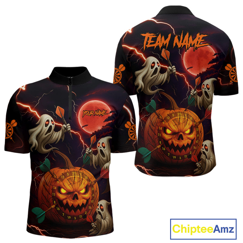 Funny Ghostly Pumpkin Dartboard Halloween Darts Shirt For Men Custom Darts Jersey, Best Darts Gift TDM4910