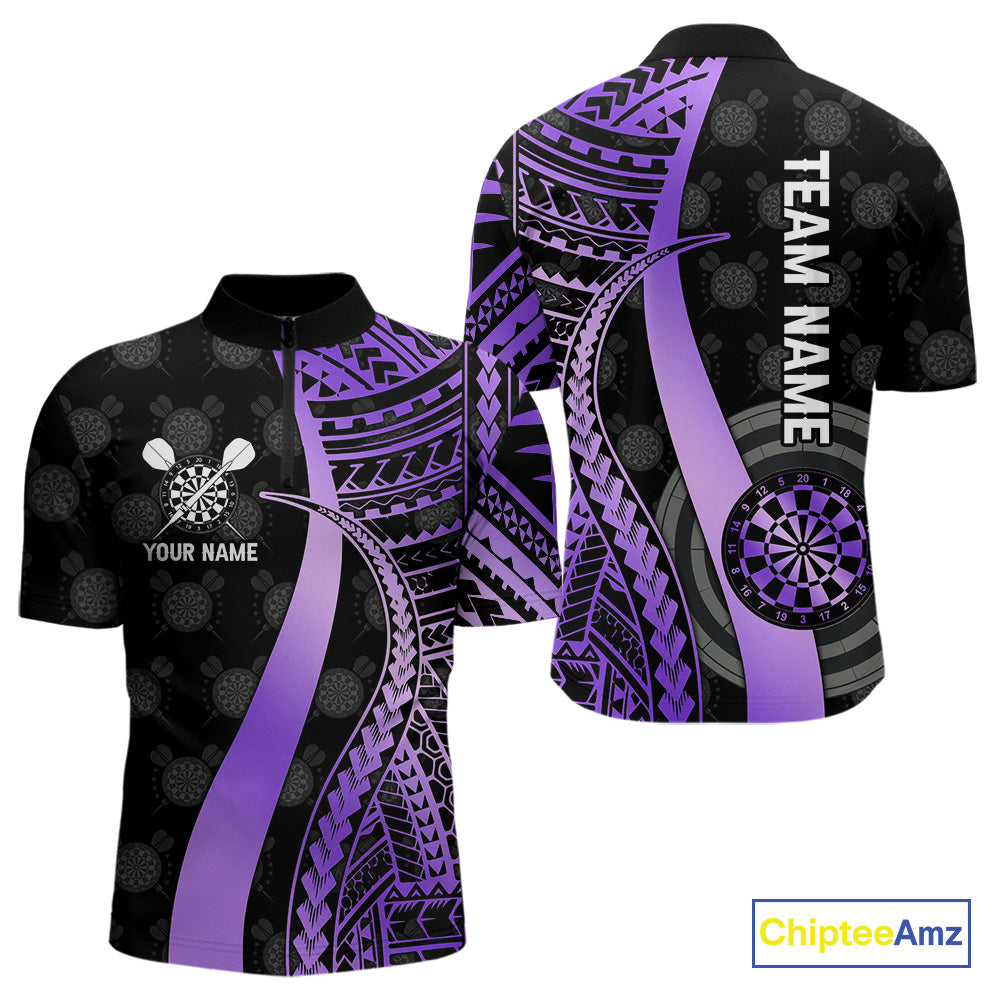 Personalized Black And Purple Tribal Dart Shirts For Men Custom Darts Jersey Team Polo & 1/4 Zip TDM4914