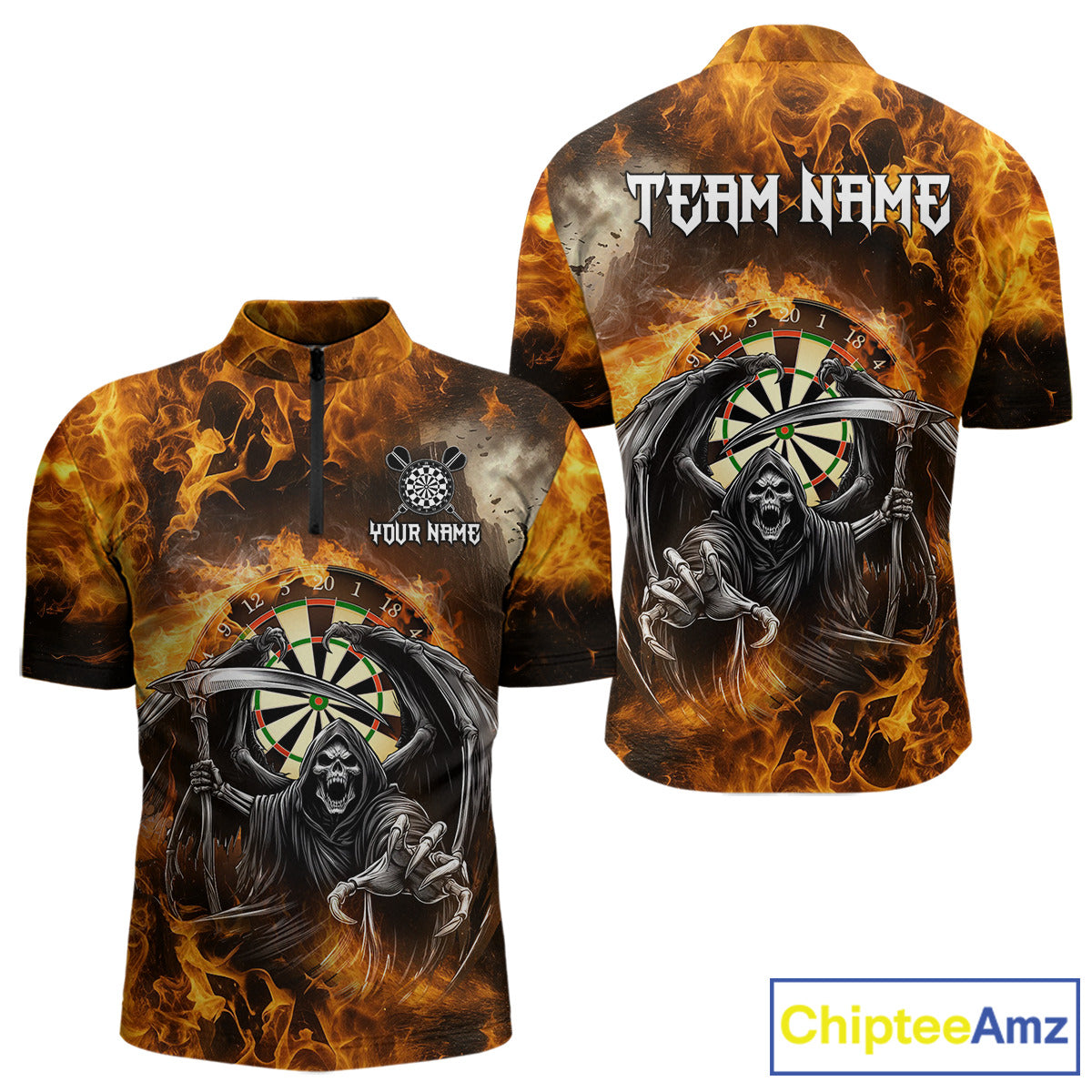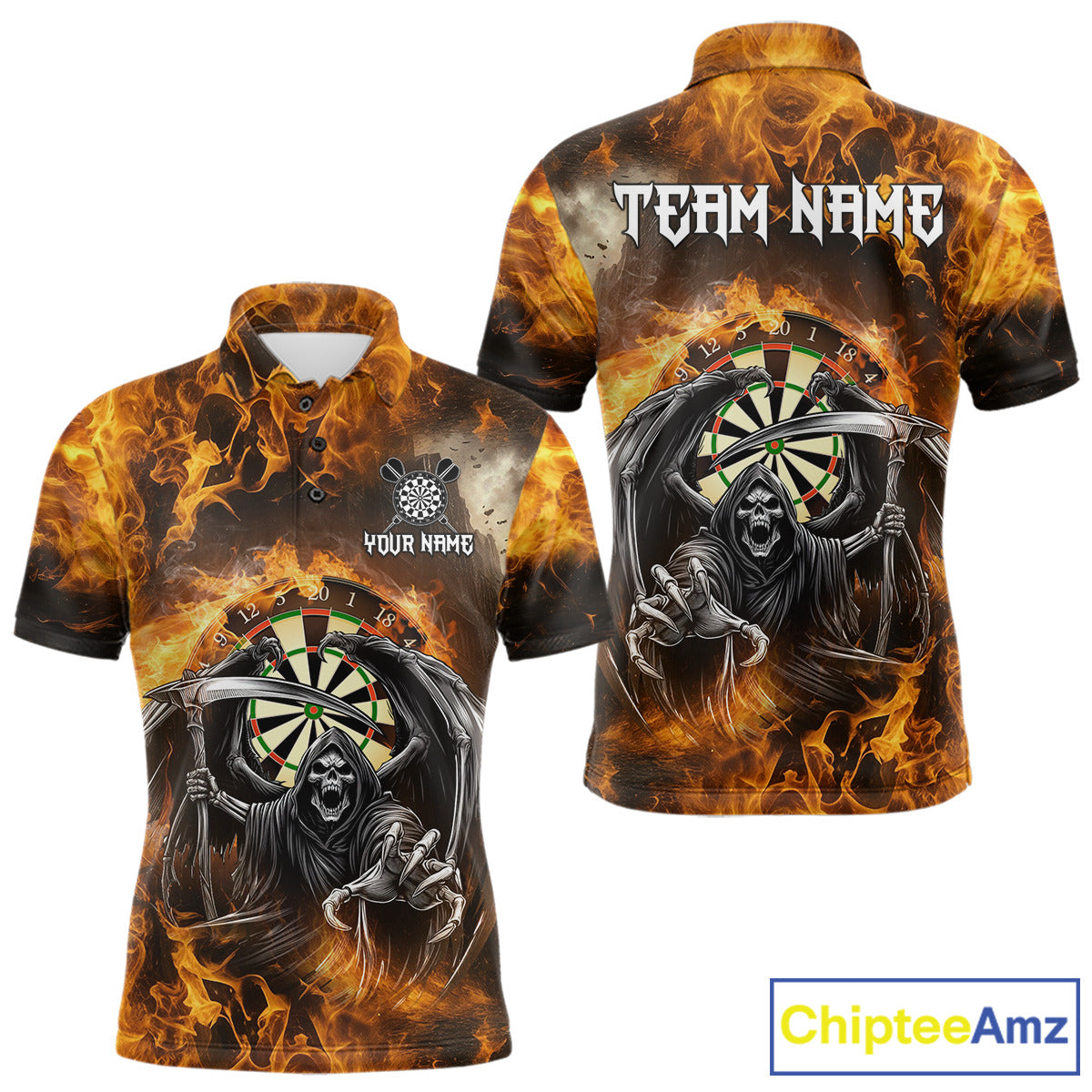Personalized Orange Flaming Grim Reaper Darts Shirt For Men Custom Fire Darts Team Jersey TDM4974