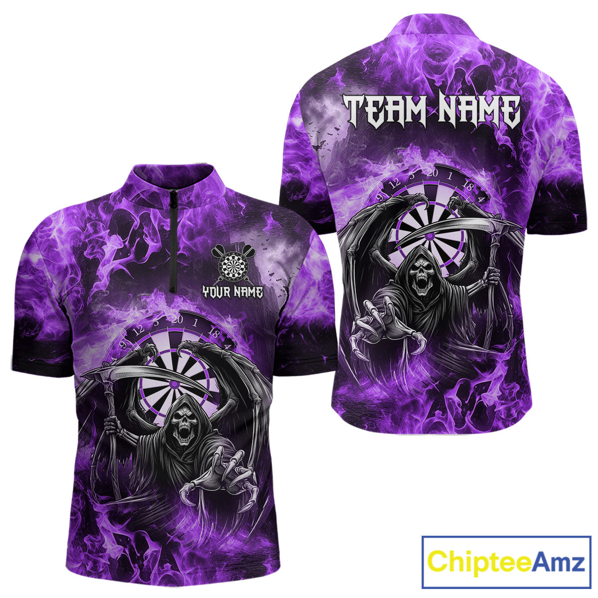 Personalized Purple Flaming Grim Reaper Darts Shirt For Men Custom Fire Darts Team Jersey TDM4976