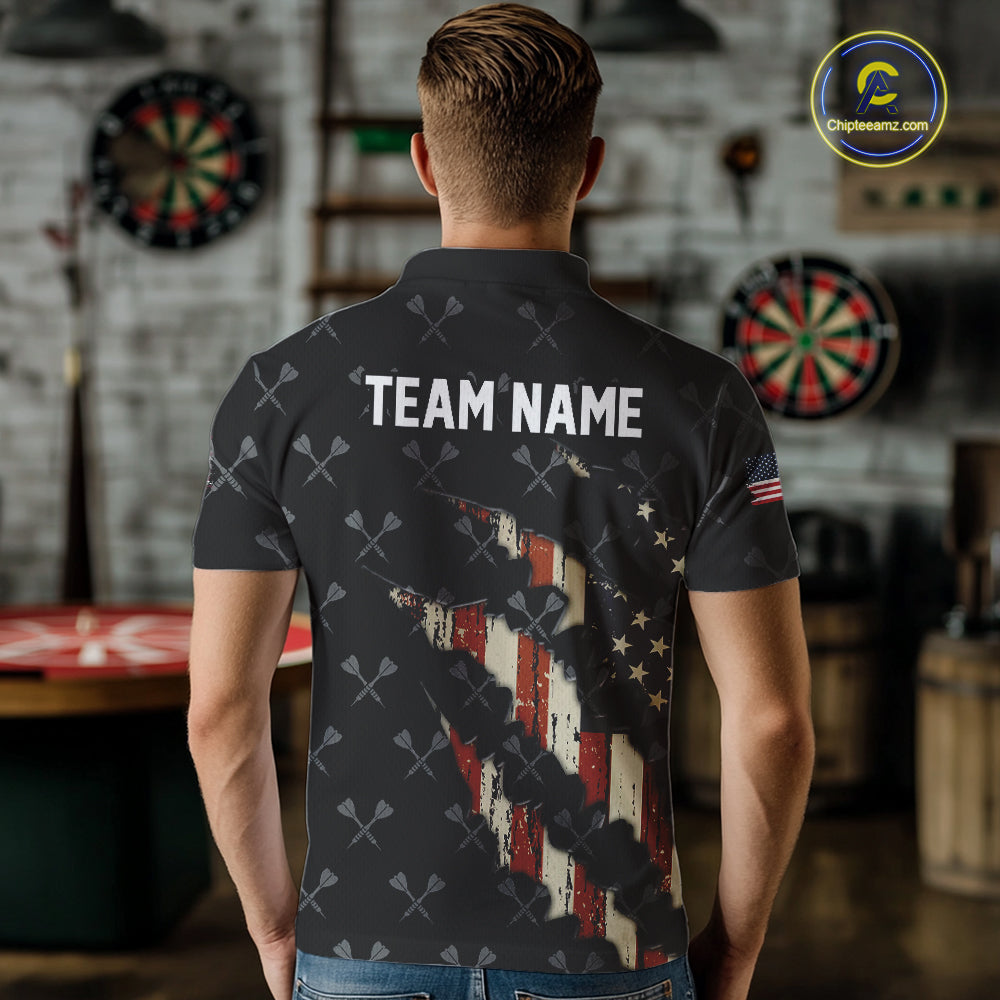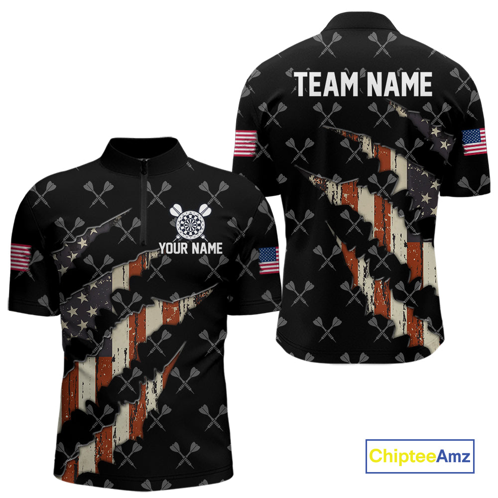 Vintage American Flag Darts Polo & Quarter Zip Custom Darts Shirt For Men, Patriotic Darts Jersey TDM4999