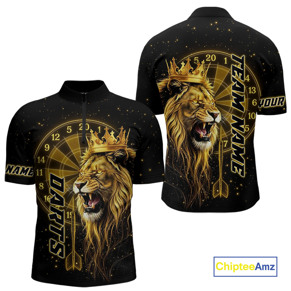 Black And Golden Funny Lion Crown Darts Shirt For Men Custom Darts League Jersey Polo & 1/4 Zip TDM5000