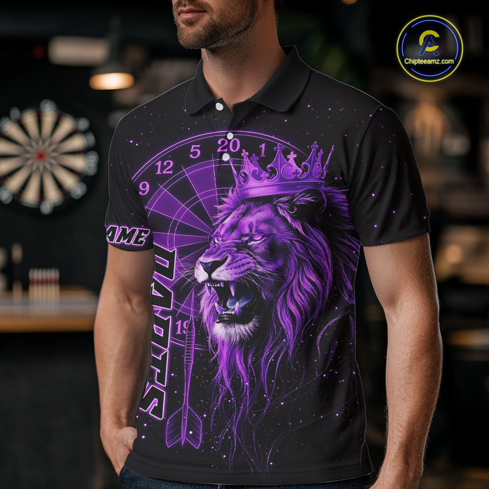 Black And Purple Funny Lion Crown Darts Shirt For Men Custom Darts League Jersey Polo & 1/4 Zip TDM5002