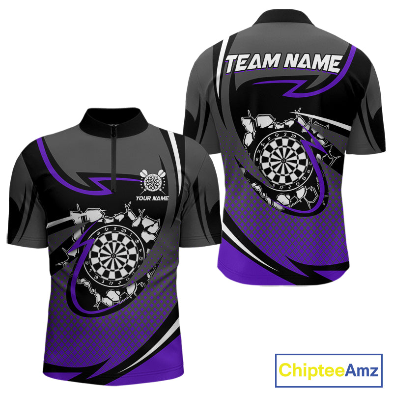 Funny Crack Dartboard Purple Darts Polo & Quarter Zip Custom Darts Shirt For Men Darts Team Jersey TDM5008