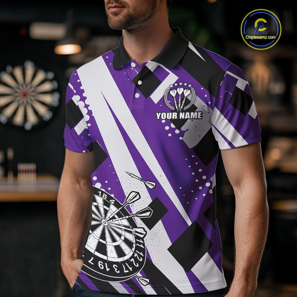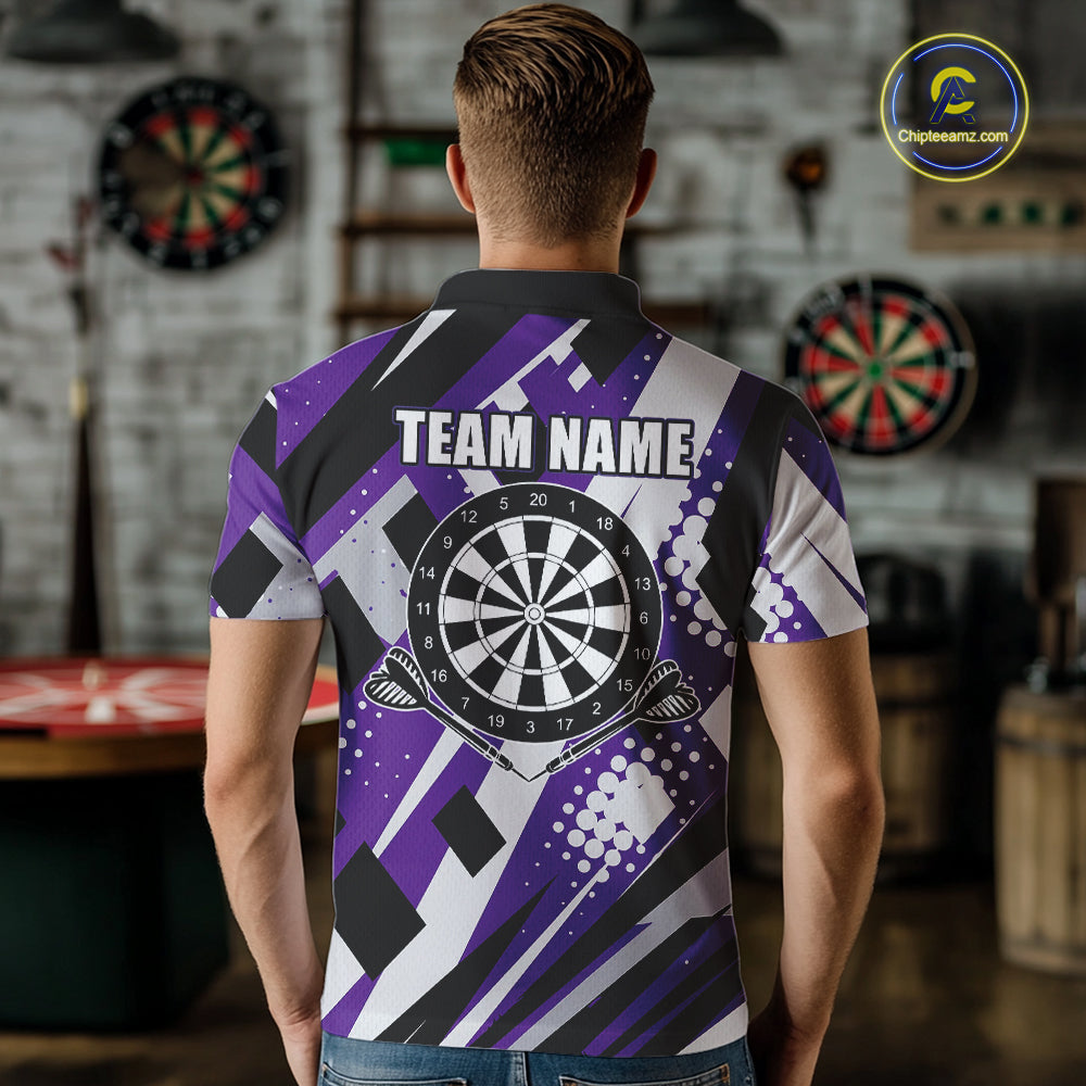 Custom Purple Geometric Darts Polo & Quarter Zip For Men, Darts Team Jersey Outfit TDM5025