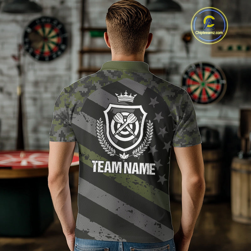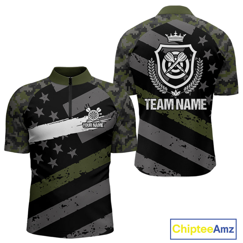 Green Military Camo US Flag Darts Jersey For Men Custom Grunge Darts Shirt Team Polo & Quarter Zip TDM5033